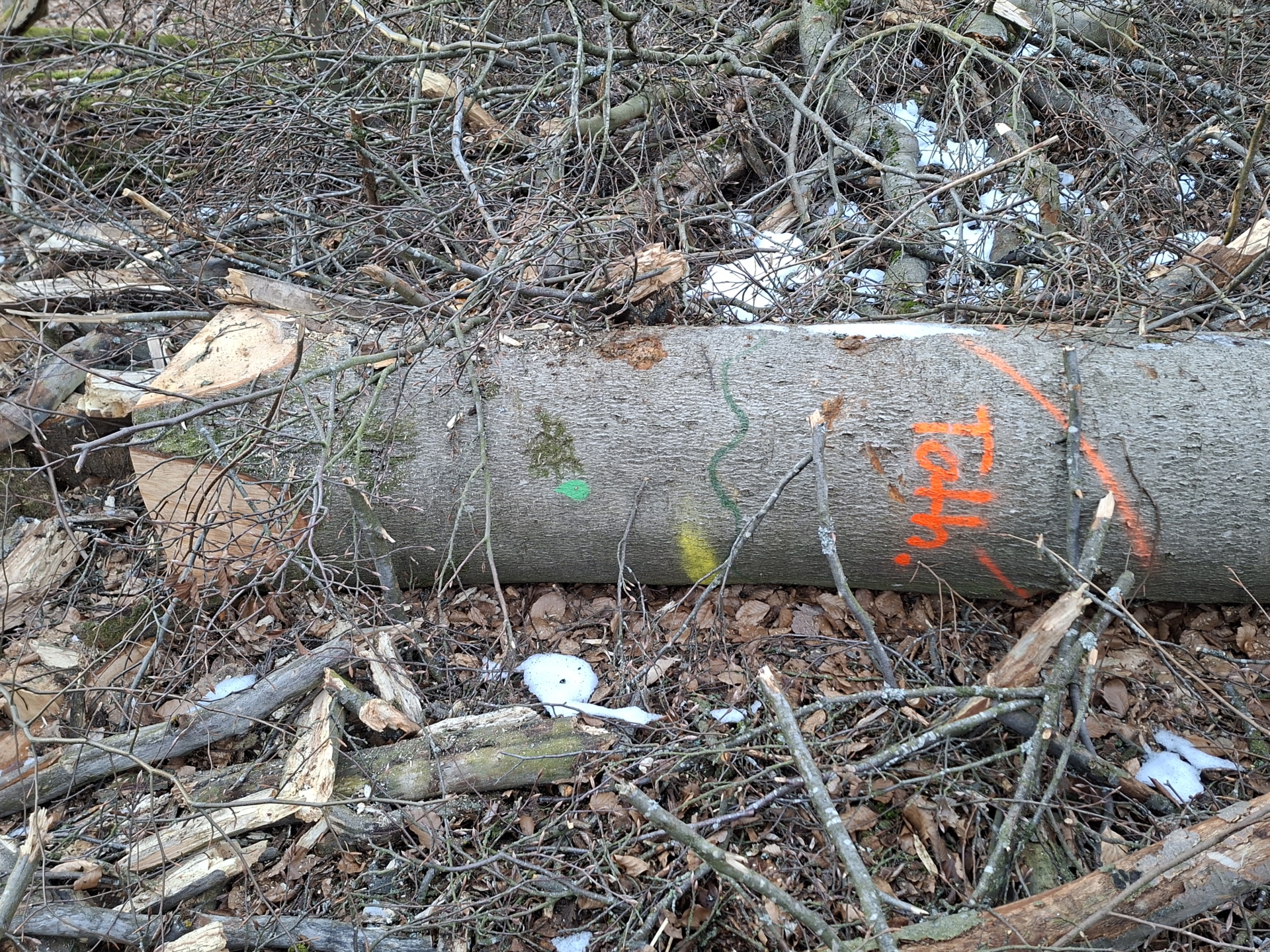 Aktueller Hieb der Bayerischen Staatsforsten im „Hohen Buchenen Wald“ – leider fielen nicht nur jede Menge dicker Buchen, sondern auch markierte Biotopbäume.